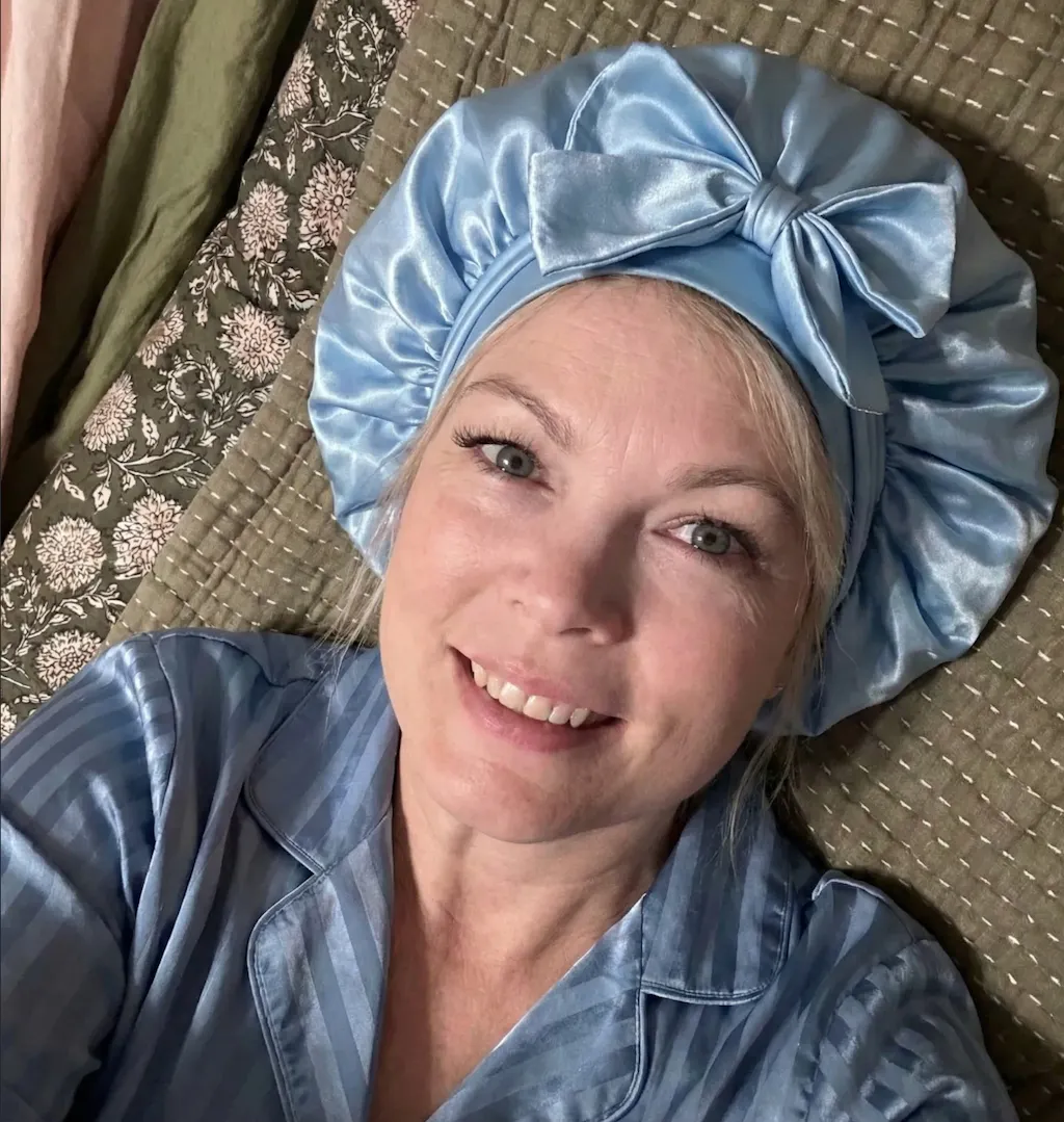 Vår bonnet minskar friktion, kapslar in fukt och bevarar glansen – så att du vaknar med mjuka och följsamt hår, redo för dagen.